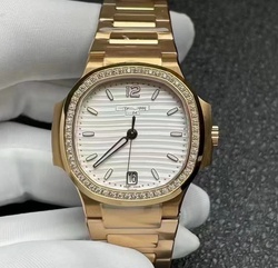 PP oro rosa 35.5mm 7118 da donna quadrante bianco T moissanite lunetta in pietra Cal.324SC movimento 8.5mm di spessore nessuna tassa contattaci