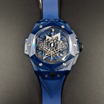 Sangblue 45mm quadrante blu completo in ceramica lunetta e custodia HUB1240 movimento smart cambio rapido cinturino