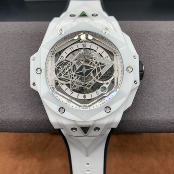 Sangblue 45mm beyaz kadran tam seramik çerçeve ve kasa HUB1240 hareketi akıllı hızlı değişim kayışı